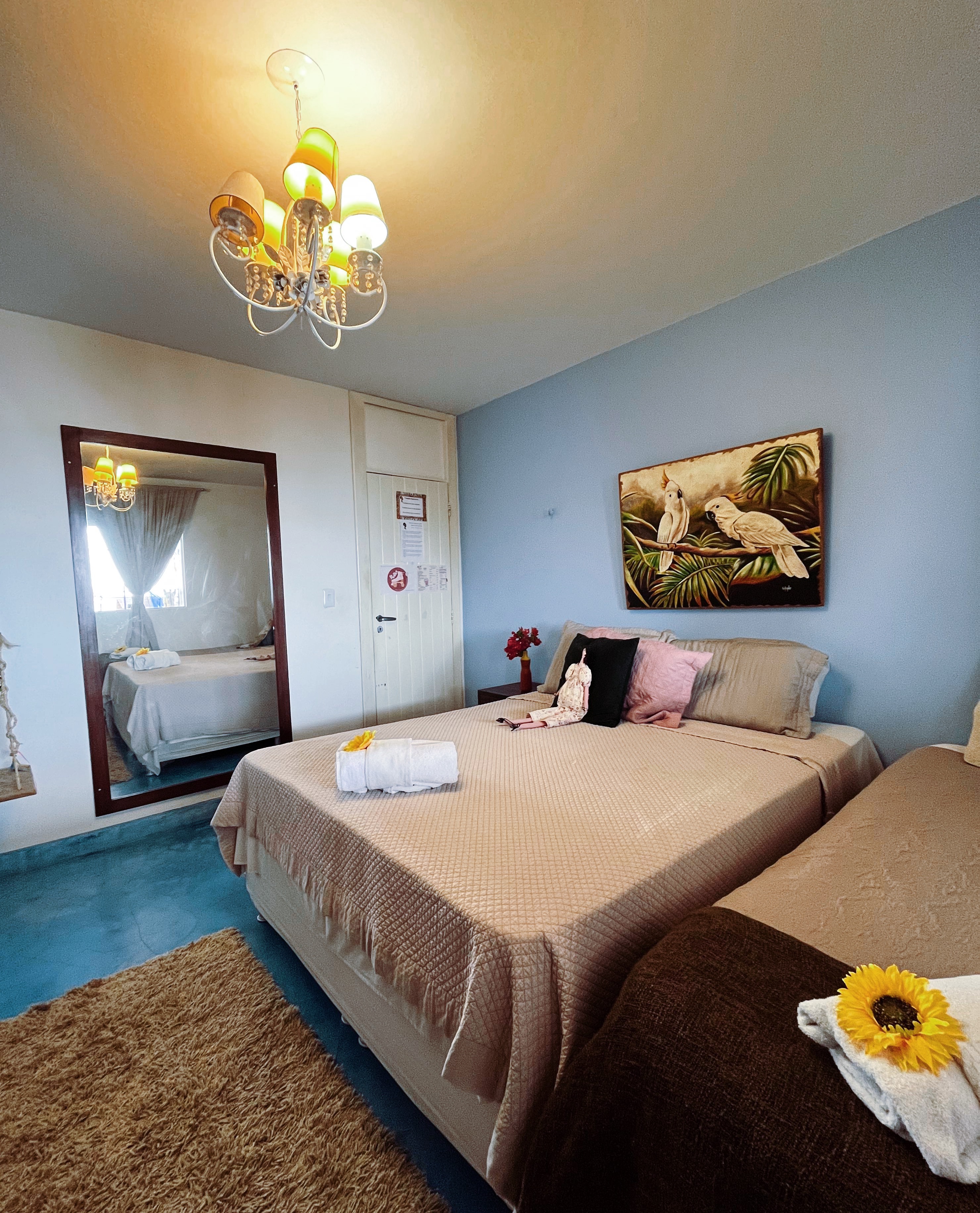 Temos suítes amplas e arejadas, algumas com varanda e vista para o mar! Dispomos de um chalé decorado para lua de mel.